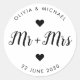 Un Sticker Étiquette classique Black Wedding Favor avec "Mr & Mrs" dans une calligraphie de police moderne rustique et élégante et des accents de coeur. Vous pouvez facilement le personnaliser avec vos noms et date mariage.