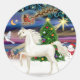 Magie de Noël avec un cheval arabe blanc. L'étoile de Bethléem illumine le chemin de trois sages tandis que Père Noël et ses rennes volent dans la nuit. Une colombe et un bonhomme de neige ajoutent aux symboles de la période de Noël.
