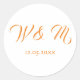Les autocollants parfaits pour vos besoins de projet, cet article dispose d'un jeu de couleurs blanc et magnifique orange. Avec une police orange écrite sur un arrière - plan blanc, les initiales du couple sont au centre avec la date du mariage en dessous. Choisissez parmi différentes formes.