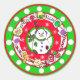 Sticker Rond Main Whimsical tiré Snowman de Noël