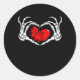 Sticker Rond Mains De Squelette Effrayant Et Coeur Rouge Déplai