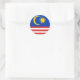 Drapeau de Malaisie. Le drapeau de la Malaisie, également connu sous le nom de Jalur Gemilang (Malais pour "Stripes of Glory"), comprend un champ de 14 bandes alternant rouge et blanc le long de la mouche et un canton bleu portant un croissant et une étoile de 14 points connue sous le nom de Bintang Persekutuan (l'Étoile Fédérale). Les 14 bandes, de largeur égale, représentent le statut égal dans la fédération des 13 Etats membres et du gouvernement fédéral, tandis que les 14 points de l'étoile représentent l'unité entre ces entités. Le croissant représente l'Islam, la religion officielle du pays ; le canton bleu symbolise l'unité du peuple malaisien ; le jaune de l'étoile et du croissant est la couleur royale des dirigeants malais.