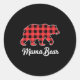 Sticker Rond Mama Bear Christmas Red Buffalo Plaid Family Match
