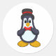 Sticker Rond Manchot comme marié avec ruban et chapeau