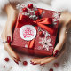 Elégant flake rouge à neige conçu au centre de l'art mandala, avec la typographie rétro classique "Joyeux Noël" isolé sur un arrière - plan blanc. Ces élégants stickers de Noël de vacances sont parfaits pour les enveloppes, enveloppements cadeaux, faveurs de fête, et plus encore! Cliquez sur le bouton Modifier/Personnaliser pour customiser cette conception avec votre texte ou votre nom personnel.