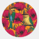 Sticker Rond Mangeurs d'abeilles et pavots sur orange