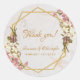 Cet élégant sticker de faveur fleurie géométrique combine les multiples tendances de 2019 : géométrique, marbre et métallique (or). Son cadre irrégulier comporte des bouquets de fleurs avec des orchidées blanches et roses sur deux hexagones dorés qui recouvrent la surface. Le message "Merci !" et les noms de la mariée et du marié sont écrits dans un élégant script calligraphique. Tout le texte a une couleur jaune doré, comme le cadre doré. Le bouquet vintage de fleurs aux orchidées roses et blanches est tiré d'une carte de voeux vintage de Bertha Maguire (1862-1910), désormais dans le domaine public.