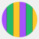 Sticker Rond Mardi Gras Stripes Motif violet vert jaune