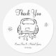 Cet autocollant mariage rond classique présente une charmante illustration de voiture rétro, symbolisant le joyeux voyage des jeunes mariés. Parfait pour sceller des enveloppes, décorer des faveurs de mariage ou ajouter un détail d'inspiration vintage à votre suite de papeterie, ce design intemporel ajoute une touche de romantisme et de nostalgie à votre célébration.