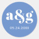 Sticker Rond Mariage bleu monogramme simple et élégant