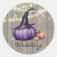 Sticker Rond Mariage Citrouille rustique violet en bois