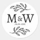 Sticker Rond Mariage Couple Monogramme Date Élégante Botanique