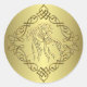 Un sceau d'enveloppe en or mariage avec une décoration gravée de cloches et de rubans mariages à l'intérieur d'un cadre orné. Ces élégants autocollants de mariage font partie d'un pack de papeterie mariage assorti qui comprend également les invitations de mariage assorties, annonces RSVP, timbres-poste mariages et étiquettes de adresse dorés correspondants. Si vous avez besoin d'un article qui n'est pas déjà offert ici, n'hésitez pas à me contacter pour plus de travail de papeterie de mariage personnalisé. Vous pouvez me joindre en cliquant sur le lien Contact directement ci-dessus.
