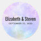 Autocollants de mariage avec un beau motif abstrait. Le violet, le rose et le blues mélangent, mélangent et coulent ensemble pour créer un design abstrait d'aquarelle élégant et magnifique.
