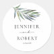 Beau autocollant mariage avec branche d'olivier aquarelle personnalisée avec les noms de la mariée et du marié et la date du mariage.