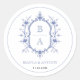 Sticker Rond Mariage de bordure en monogramme bleu élégant