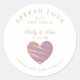 Sticker Rond Classique Pour Le Mariage De Coeur Violet. AVIS IMPORTANT : Ce design fait partie d'une collection et contient d'autres éléments coordonnés que vous pouvez trouver dans mon magasin. Parfois, il peut être difficile d'aesthealign et des textes ou initiales sur les dessins, si oui dites-moi et je le ferai pour vous. Customisez le design à votre goût et si vous ne trouvez pas ce que vous cherchez ou avez besoin d'une quelconque modification, contactez-moi à hello@themonogramfactory.com et je le ferai pour vous.