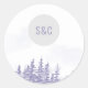 Sticker Rond Mariage de forêt d'hiver Simple Monogramme Aquarel