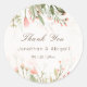 L'autocollant en Merci Mariage floral représente un joli jardin fleuri d'aquarelle rose simple au feuillage vert. Il présente le nom et la date du couple mariage.