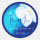 Sticker rond classique avec fleur blanche à la neige sur l'arrière - plan d'eau de dégagement bleu vif, aquarelle turquoise azurée, arrière - plan floral de printemps ou d'été de couleur aérée. Sticker rond classique à laine blanche botanique élégant à fleurs florales. Collection Ressortissante.