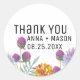 Sticker Merci Aquarelle moderne Mariage Classic Round Sticker est parfait pour un mariage élégant. Personnalisez les étiquettes autocollants avec le nom de la mariée et du marié et la date du mariage.