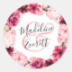 Sticker Rond Mariage de monogramme de couronne florale rose vif