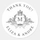 Élégant Monogramme Feuille Vintage Initiale Mariage Classic Round Sticker. Initiales monogrammes encadrées par d'élégantes crêtes vintages illustrées à la main en noir et blanc, de style simple et sophistiqué. Un choix parfait pour les mariages modernes, classiques et simples. Veuillez vérifier les pièces correspondantes de la collection.