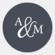 Scellez vos enveloppes d'invitation ou vos faveurs avec ces élégants stickers de mariage en couleur unie avec vos initiales travaillées dans un monogramme joint par une esperluette décorative, sur un arrière - plan bleu marine pour un look simple et intemporel. Conçu pour correspondre à notre collection de faire-part de mariage Ampersand Monogram.
