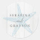 Mariage rustique de poisson-étoiles de plage customisé autocollants ou enveloppes avec un arrière - plan rustique en bois gris et blanc avec une illustration de poisson-étoiles vintage bleu doux.