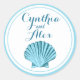 Sticker Rond Mariage de Scallop Seashell Beach | bleu menthe