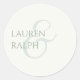 Ce petit autocollant chic et élégant présente un ensemble contemporain de polices et d'éléments de script en vert sauge, contre un arrière - plan en ivoire crémeux. Fait partie d'une collection de mariages qui comprend un ensemble complet de mariages stationnaires et de faveurs.