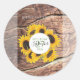 Ce design présente des tournesols rustiques sur fond de bois. La couronne de tournesol encadre élégamment la date mariage. Les tons jaunes, verts et marron créent une atmosphère rustique de jardin de campagne naturel. La bordure opaque met en évidence le centre du tournesol. Design élégant autocollant de mariage avec des éléments modernes. Des invitations de mariage et d'autres articles de papeterie sont également disponibles.