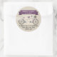 Sticker Rond Mariage de vélo Faux Linen Plum Tandem