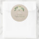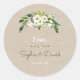 Sticker Rond Mariage d'écriture moderne de Burlap Floral Blanc