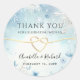 Moderne, élégant, bleu poussiéreux mariage d'hiver Merci sticker pour les faveurs, avec coeur de corde or et flocons de neige.