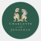 Apportez un rugissement amusant à votre fête avec ces autocollants de mariage à thème dinosaure ! Doté d'une adorable mariée T-Rex et marié sur un élégant arrière - plan vert foncé et riche. Des autocollants parfaits pour une réception fantastique de mariage jurassique, un dîner de répétition ou une célébration à thème dinosaure. Avec une typographie de script moderne et des modèles personnalisables, vous pouvez facilement personnaliser avec les noms du couple heureux. Le design charmant de T-Rex, illustré dans des tons marron et mêle romantisme ludique et élégance naturelle, en faisant un autocollant hors du commun que vos invités aimeront. Les oeuvres originales de l'artiste Catherine Sweetman, exclusivement sur Zazzle, apportent une touche unique à votre journée de mariage jurassique.