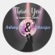 Revenez au charme classique avec notre Sticker en Merci Mariage ! Parfait pour les amateurs de musique et les amateurs de rétro, ce geste de remerciement unique fera vibrer vos invités à travers la voie de la mémoire. Avec des reflets radiants de boules disco et des silhouettes intemporelles de célébration, chaque autocollant est personnalisé avec vos noms spéciaux et votre date pour commémorer votre événement inoubliable. Express votre gratitude avec une touche de nostalgie !