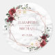 Moderne, élégant et tendance, cet autocollant mariage rond classique présente un faux cuivre géométrique orné d'aquarelle de verdure eucalyptus et d'arrangements floraux bordeaux et roses, sur une texture de marbre blanc imitation. Les noms du couple et la date du mariage sont dans une couleur bordeaux assortie. Fait partie d'un ensemble correspondant. Copyright Invitations élégants. Tous droits réservés.