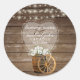 Sticker Rond Mariage en tonneau rustique en bois avec fleurs bl