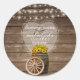 Sticker Rond Mariage en tonneau rustique en bois avec tournesol
