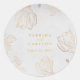 Ces autocollants ronds classiques présentent des fleurs, des bourgeons et des feuilles d'eucalyptus en ligne dorée. Personnalisez avec vos détails de mariage.