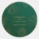 Ces autocollants ronds classiques présentent des fleurs, des bourgeons et des feuilles d'eucalyptus en ligne dorée. Personnalisez avec vos détails de mariage.