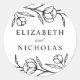 Élégants autocollants de mariage fleuris avec des fleurs en croquis noir et des feuilles avec un arrière - plan blanc. Personnalisez les autocollants de mariage floral avec vos noms. Les autocollants à fleurs sont parfaits pour sceller les enveloppes mariages, les faveurs de mariage, et plus encore! Conçu pour coordonner avec notre collection de mariages floraux esquissés.