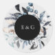 Sticker Rond Mariage Floral d'hiver bleu gelé