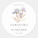 Ces autocollants élégants sont parfaits pour les mariages de printemps et d'été. Ce design présente des iris aquarelles dans des nuances de lilas et de bleu pervenche. Des touches subtiles d'or ajoutent un élément scintillant et magique.