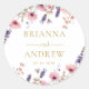 Les autocollants de mariage personnalisés ont un beau design floral, rose & violet, peut être personnalisé avec vos noms et date.
