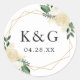 Sticker Rond Mariage Floral Vert Or Moderne Date Monogramme