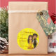 Haldi sangeet mignon couple nuptiale indienne charicature caricature caricature mariage hindoue merci pour les autocollants, arrière - plan jaune et frontière de fleurs d'or mariage indien haldi mehndi sangeet préférez les autocollants avec un joli personnage de dessin animé, vérifiez votre taille et une touche personnalisée à votre sangeet haldi faveurs