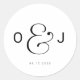 Ampersand moderne avec le nom de la mariée et du marié initiales simple minimaliste monogramme mariage noir et blanc faveur étiquette ou enveloppe collant rond sceau de marque.