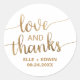 Ces autocollants or merci mariage sont parfaits pour un mariage moderne. Le design comporte de belles feuilles d'or faux calligraphie moderne. Personnalisez les étiquettes autocollants avec le nom de la mariée et du marié et la date du mariage. Remarque : Ce design ne comporte pas de véritable feuille d'or. C'est un graphique de haute qualité fait pour ressembler à de l'or chatoyant.